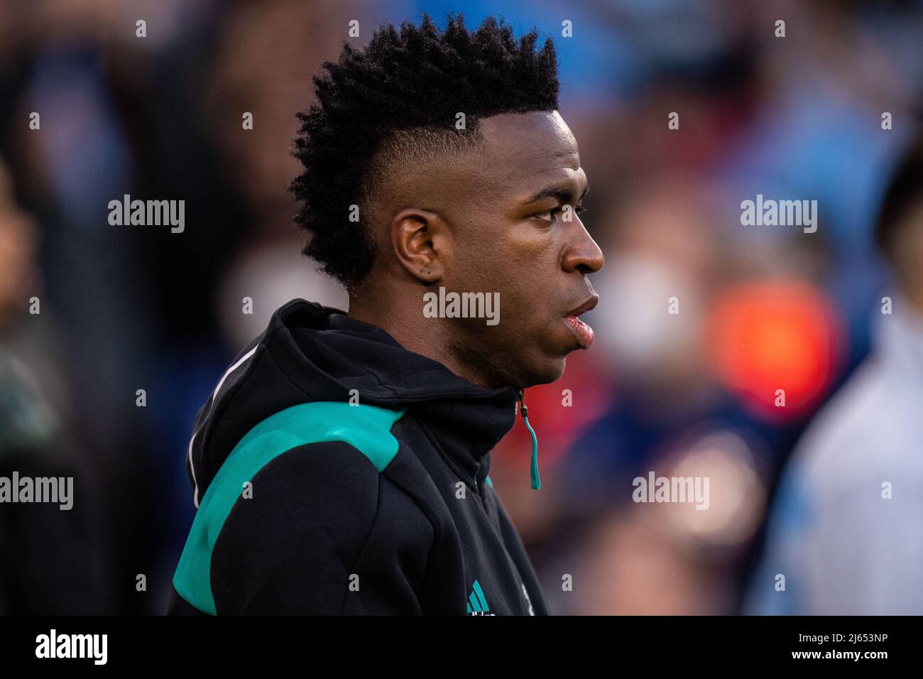 Manchester England April 26 Vinicius Junior During The Uefa Champions League Semi Final Leg One Match Between Manchester City And Real Madrid At City Of Manchester Stadium On April 26 2022
